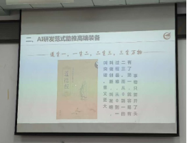 报告分为“高端装备智能化”、“AI研发范式助推高端装备”两个方面内容,庞长涛从装备智能化进程入手,阐述了自适应制造、智能制造到高端装备智能化的演进路径,通过特斯拉、宝马等企业的机器人具身智能案例,展示了其在智能装配、质量检测、搬运物流、预测性维护等环节的实践效能,明确了智能化高端装备“接入AI大模型、实现人机自由交互、具备自主决策与持续学习能力”的核心特点。此外,他还以《道德经》“道生一,一生二,二生三,三生万物”的哲学智慧,隐喻科研从单点突破到体系化创新的发展规律,为师生科研思维开拓了全新维度。