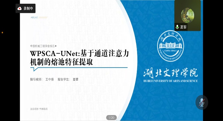 11月13日至15日,第二十六次全国焊接学术会议在成都召开, 2020级研究生夏攀参加线上会议,作题为“基于通道注意力机制的熔池特征分割方向”的学术报告,展示了自己丰富的研究成果,并与现场的专家学者进行深入交流。