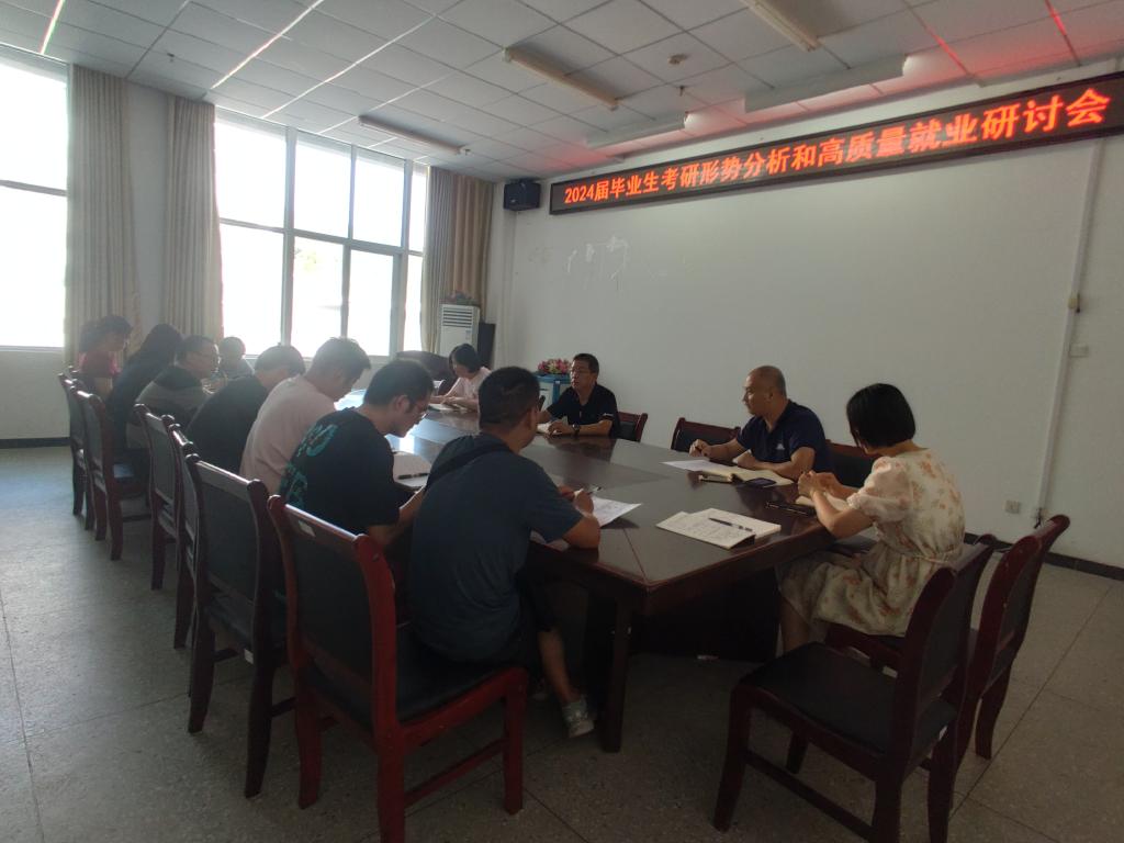 9月7日下午2点30分,伟德国际victor1946召开2024届毕业生考研形势分析和高质量就业研讨会。参加会议的有,党委书记詹玉刚、副院长孙艳玲。会议由王超副书记主持,毕业年级辅导员、班主任也参加了本次会议。