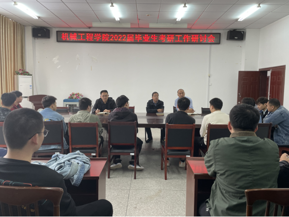 (机械通讯员赵兆钧)又是一年毕业季,学生的毕业去向一直是我院学生工作的重中之重,院领导高度重视每年毕业生就业、考研情况。为进一步帮助2022届毕业生认清考研形势,尽早的为考取研究生做准备,10月8日,我院在工科楼408召开2022届毕业生考研工作研讨会暨考研学子动员大会。我院党委书记詹玉刚,副书记王超,毕业生辅导员徐一刚,及参加研究生考试的同学参加此次会议。