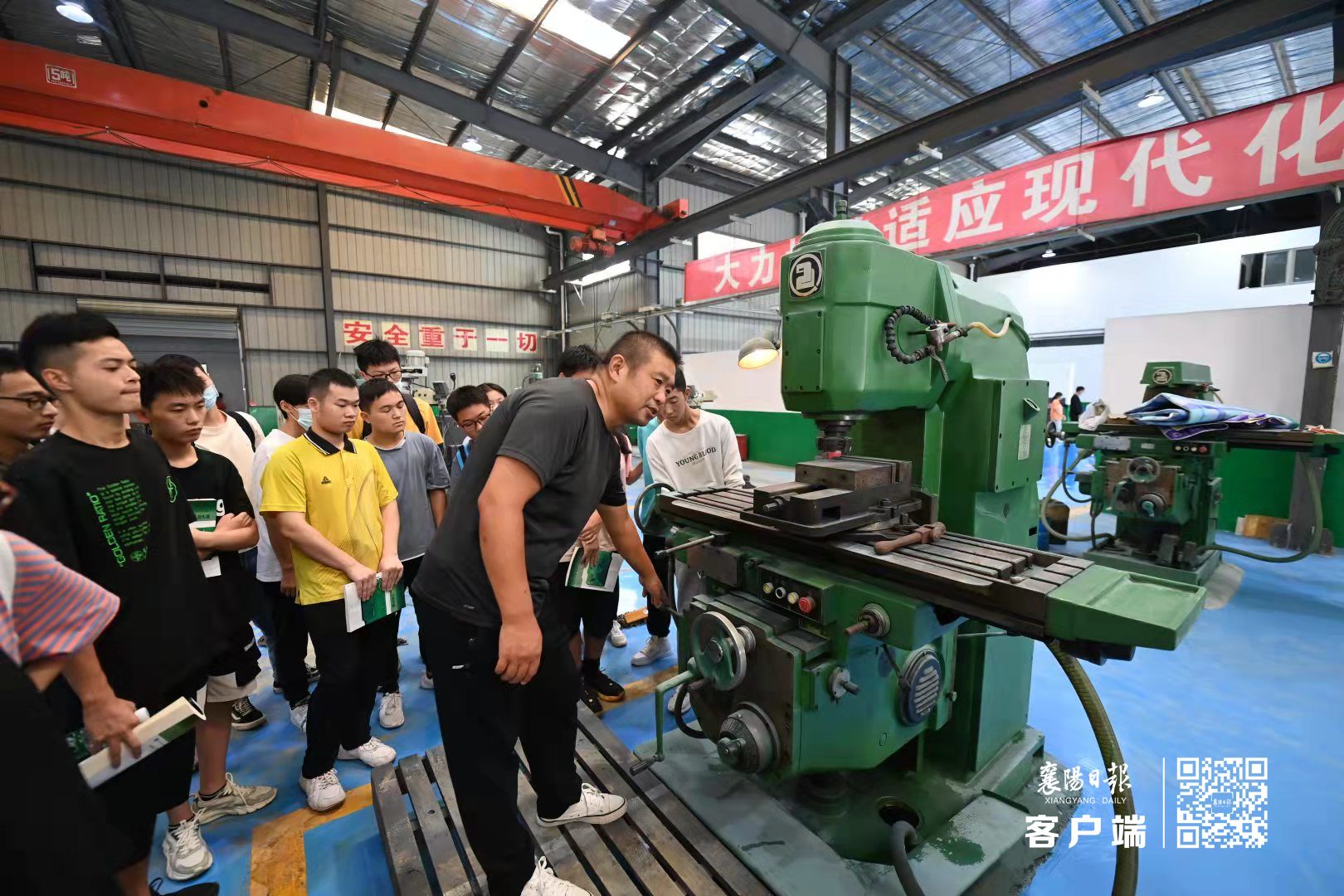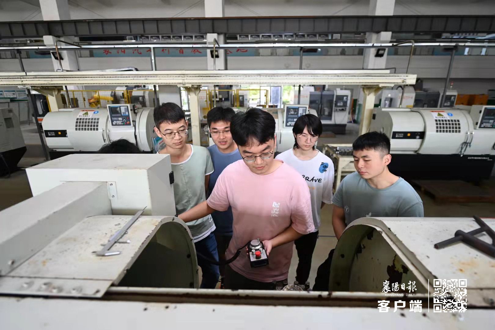 9月8日,返校后的大学生正在伟德国际1946校内实习工厂学习操作数控设备、拆解组装汽车发动机,了解机床设备。
