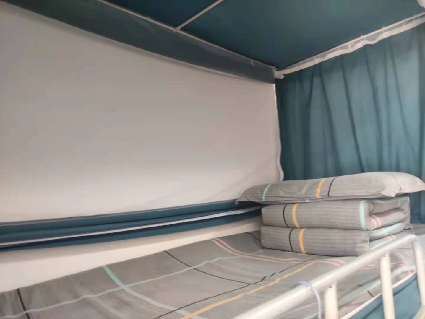 我在学院提出要求,同学们每天早上起床第一件事情是叠好被子。要改变寝室环境从叠被子做起,以此作为寝室建设的切入点。我们用图片和视频记录下了寝室原来的模样(地面、桌面、卫生间、洗漱台等等),我们告诉同学们,一个寝室的环境直接反映了这个寝室大学生的综合素养。在学院各年级中开展“叠被子”初赛、复赛、决赛。大家忙得火热朝天,寝室成员相互协作,一起努力。一段时间以后,寝室环境发生了很大的改变,同学们也深受鼓舞,他们发现原来把一个很凌乱的宿舍要收拾整洁,几分钟就可以完成。我们从每个年级选出三间寝室参加总决赛。同学们将铁架子床抬到了大学生活动中心的舞台中央,大家兴奋不已,都说从来没有办过这样的活动。